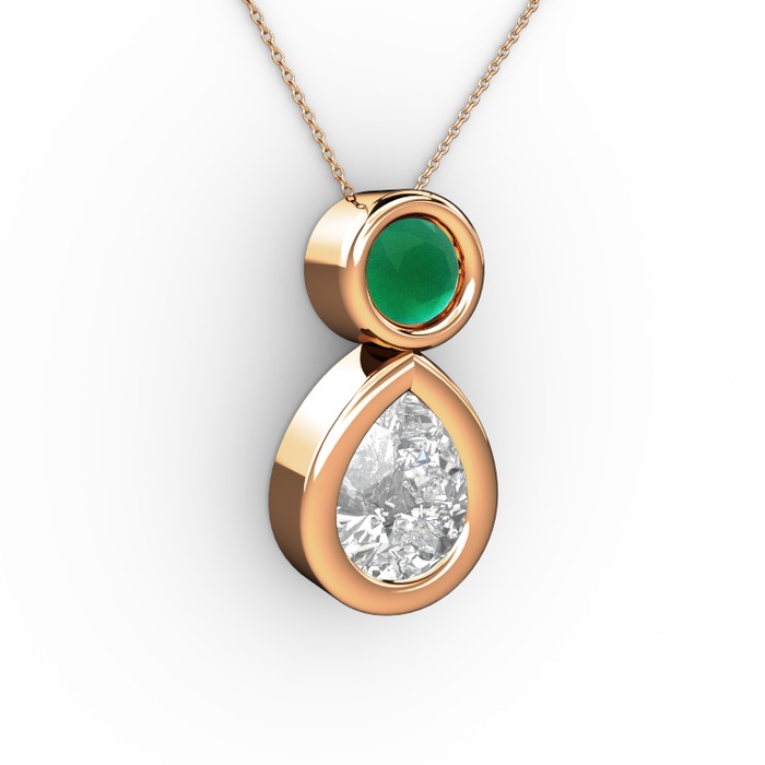 Swarovski ve kök zümrüt 925 ayar rose altın kaplama gümüş kolye (40 cm rose altın rolo zincir)