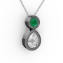 Swarovski ve kök zümrüt 925 ayar siyah rodyum kaplama gümüş kolye (40 cm beyaz altın rolo zincir)