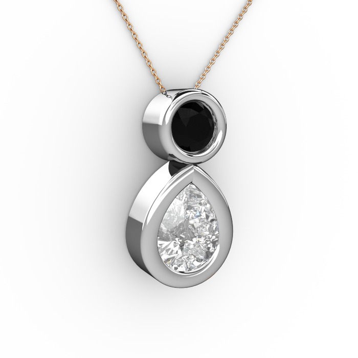 Swarovski ve siyah zirkon 8 ayar beyaz altın kolye (40 cm rose altın rolo zincir)