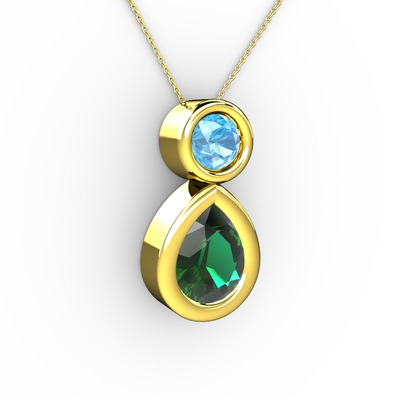 Yeşil kuvars ve akuamarin 8 ayar altın kolye (40 cm altın rolo zincir)
