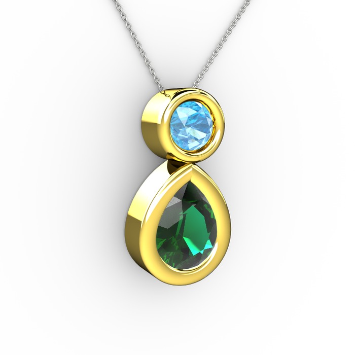 Yeşil kuvars ve akuamarin 8 ayar altın kolye (40 cm gümüş rolo zincir)