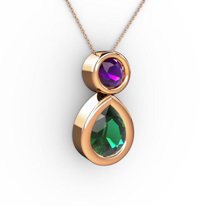 Yeşil kuvars ve ametist 925 ayar rose altın kaplama gümüş kolye (40 cm gümüş rolo zincir)