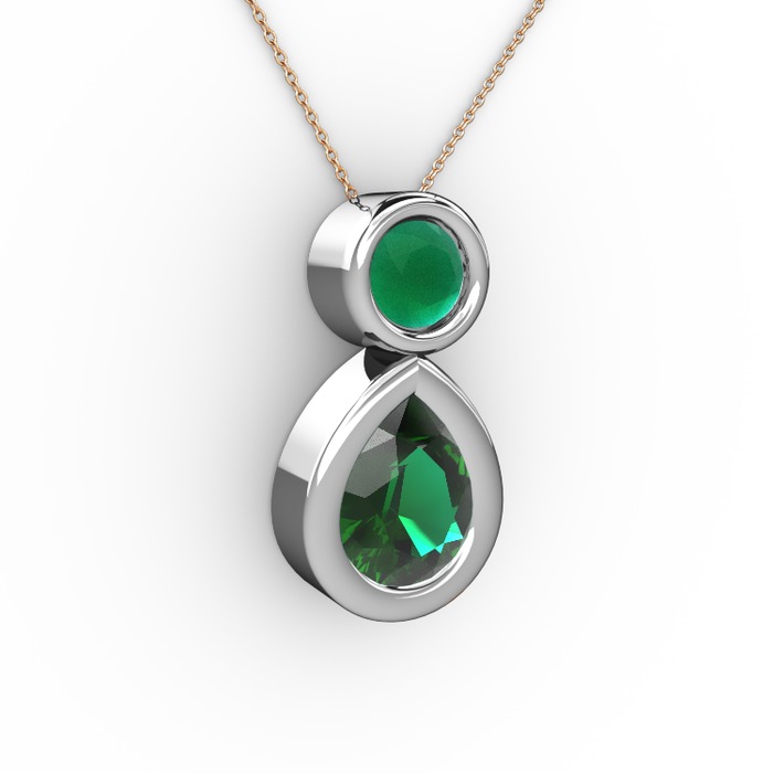 Yeşil kuvars ve kök zümrüt 8 ayar beyaz altın kolye (40 cm gümüş rolo zincir)
