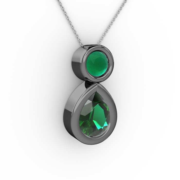 Yeşil kuvars ve kök zümrüt 925 ayar siyah rodyum kaplama gümüş kolye (40 cm gümüş rolo zincir)
