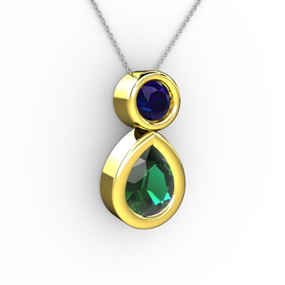 Yeşil kuvars ve lab safir 8 ayar altın kolye (40 cm beyaz altın rolo zincir)