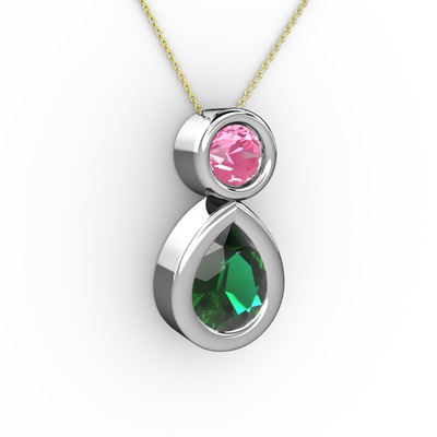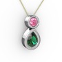 Yeşil kuvars ve pembe kuvars 14 ayar beyaz altın kolye (40 cm altın rolo zincir)