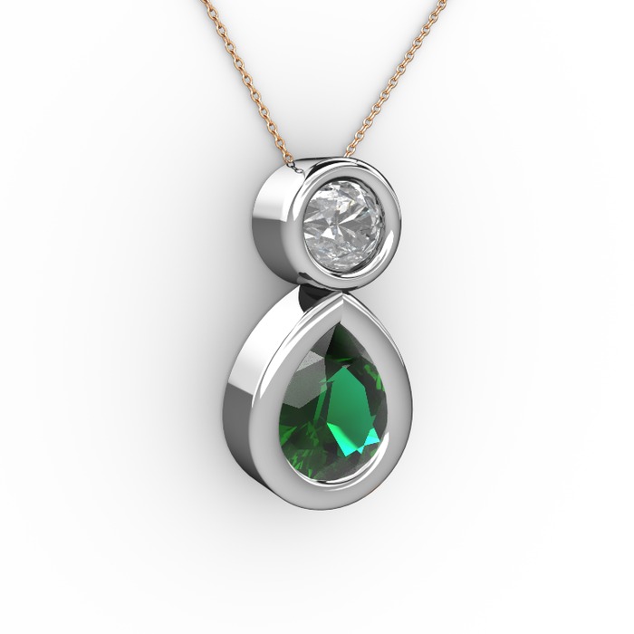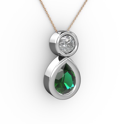 Yeşil kuvars ve pırlanta 14 ayar beyaz altın kolye (0.5 karat, 40 cm gümüş rolo zincir)