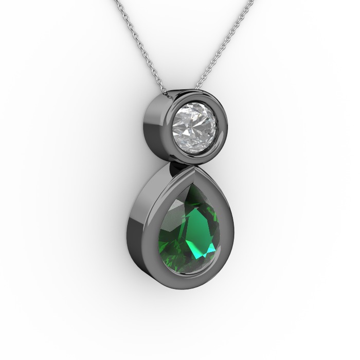 Yeşil kuvars ve pırlanta 925 ayar siyah rodyum kaplama gümüş kolye (0.5 karat, 40 cm gümüş rolo zincir)