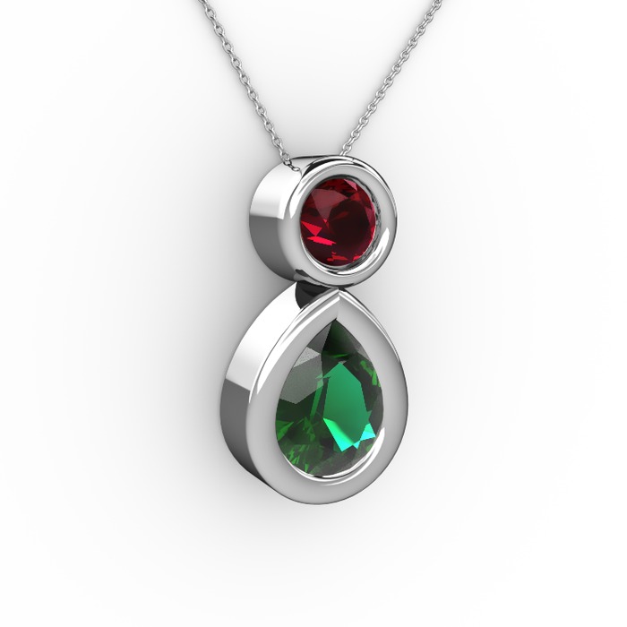 Yeşil kuvars ve rodolit garnet 8 ayar beyaz altın kolye (40 cm beyaz altın rolo zincir)