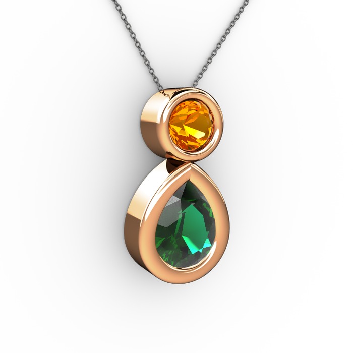 Yeşil kuvars ve sitrin 8 ayar rose altın kolye (40 cm gümüş rolo zincir)