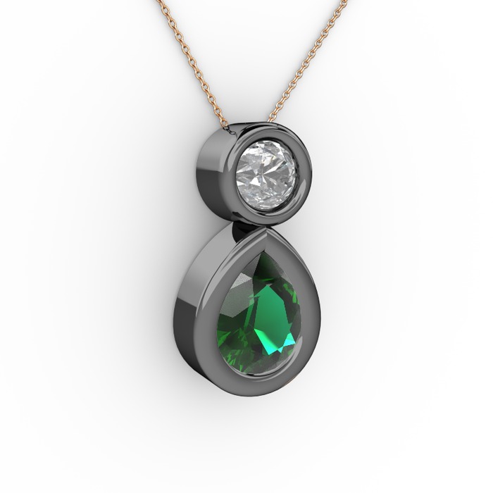 Yeşil kuvars ve swarovski 925 ayar siyah rodyum kaplama gümüş kolye (40 cm rose altın rolo zincir)