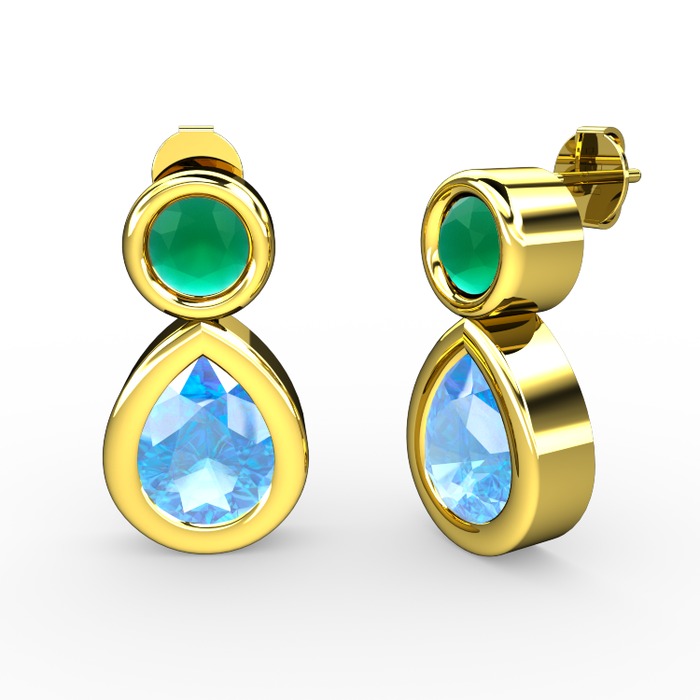 Akuamarin ve kök zümrüt 925 ayar altın kaplama gümüş küpe