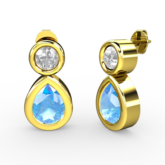 Akuamarin ve pırlanta 14 ayar altın küpe (1 karat)