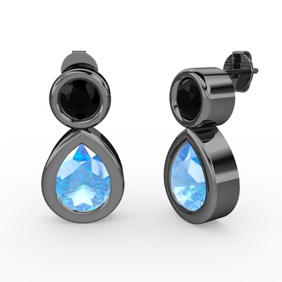 Akuamarin ve siyah zirkon 925 ayar siyah rodyum kaplama gümüş küpe