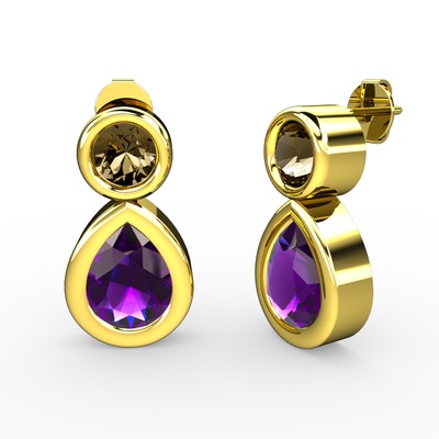 Ametist ve dumanlı kuvars 14 ayar altın küpe