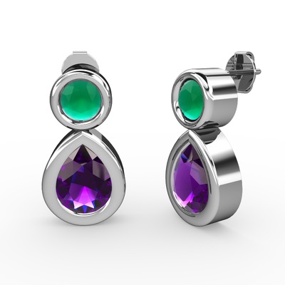 Ametist ve kök zümrüt 8 ayar beyaz altın küpe