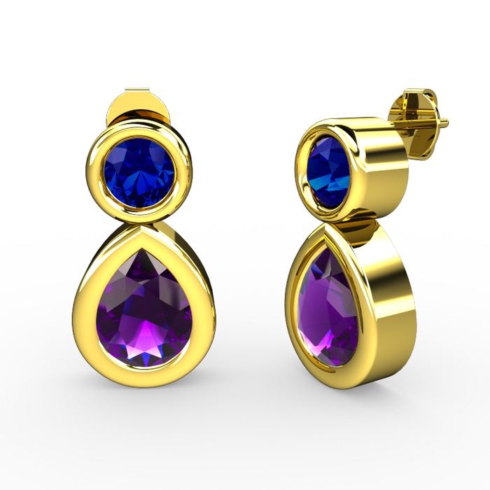 Ametist ve lab safir 8 ayar altın küpe