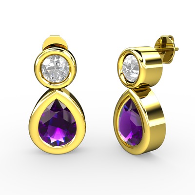 Ametist ve pırlanta 14 ayar altın küpe (1 karat)