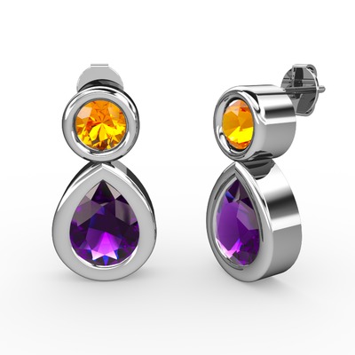 Ametist ve sitrin 14 ayar beyaz altın küpe
