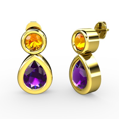 Ametist ve sitrin 925 ayar altın kaplama gümüş küpe