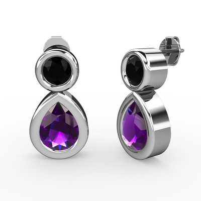 Ametist ve siyah zirkon 18 ayar beyaz altın küpe