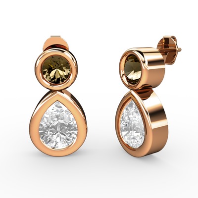 Beyaz zirkon ve dumanlı kuvars 8 ayar rose altın küpe
