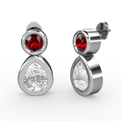 Beyaz zirkon ve garnet 18 ayar beyaz altın küpe