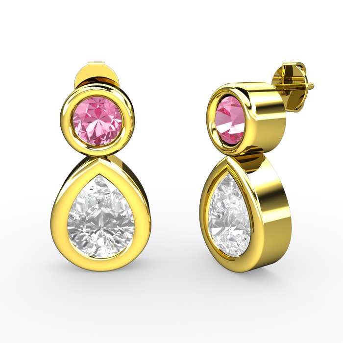 Beyaz zirkon ve pembe kuvars 925 ayar altın kaplama gümüş küpe
