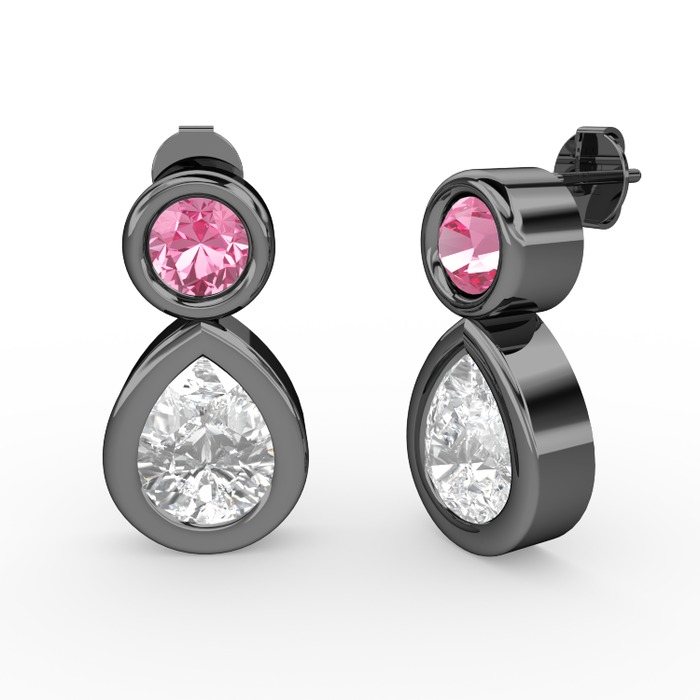 Beyaz zirkon ve pembe kuvars 925 ayar siyah rodyum kaplama gümüş küpe