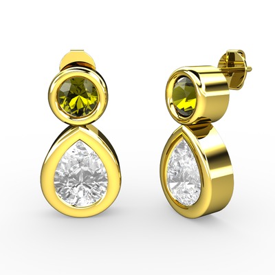 Beyaz zirkon ve peridot 8 ayar altın küpe