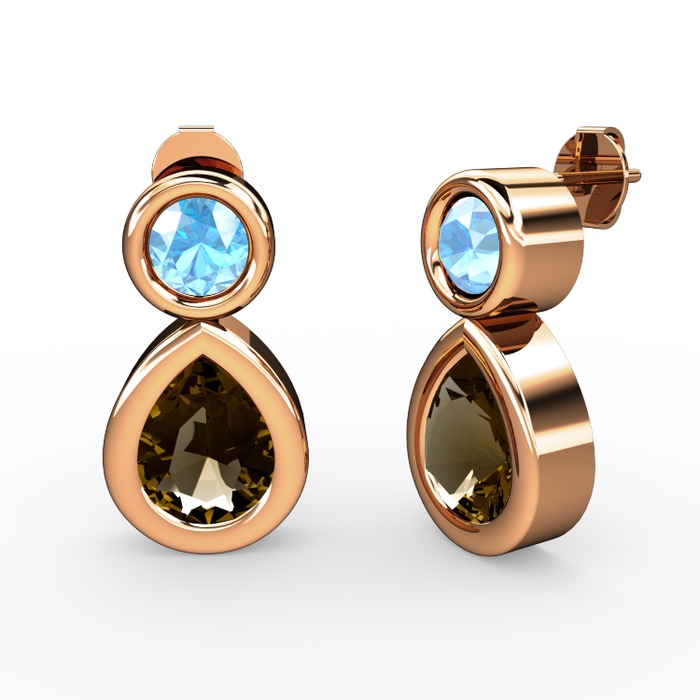 Dumanlı kuvars ve akuamarin 14 ayar rose altın küpe