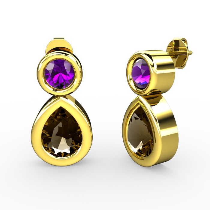 Dumanlı kuvars ve ametist 18 ayar altın küpe