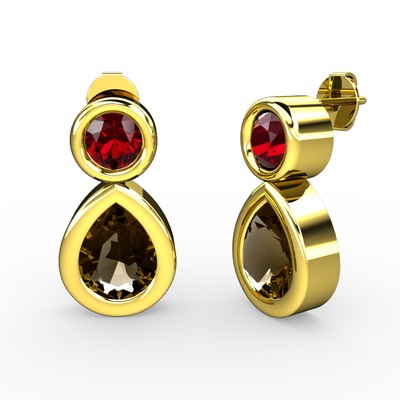 Dumanlı kuvars ve garnet 18 ayar altın küpe