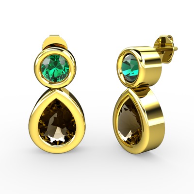 Dumanlı kuvars ve yeşil kuvars 18 ayar altın küpe