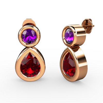 Garnet ve ametist 14 ayar rose altın küpe
