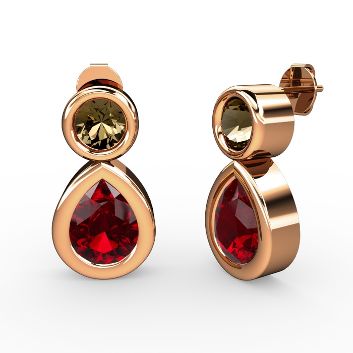 Garnet ve dumanlı kuvars 925 ayar rose altın kaplama gümüş küpe
