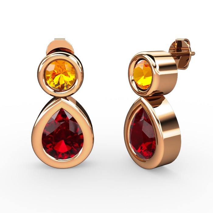 Garnet ve sitrin 925 ayar rose altın kaplama gümüş küpe