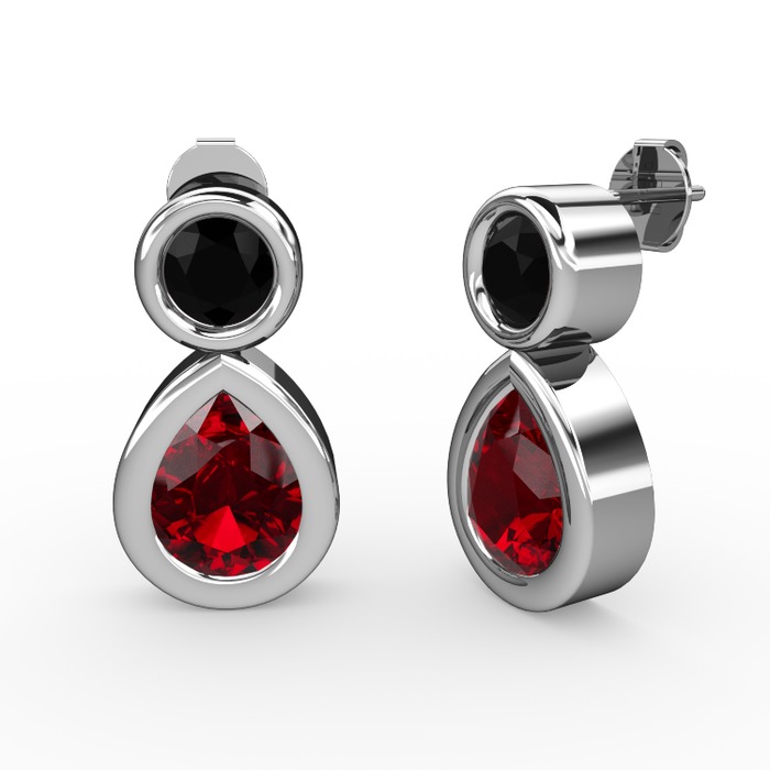 Garnet ve siyah zirkon 925 ayar gümüş küpe