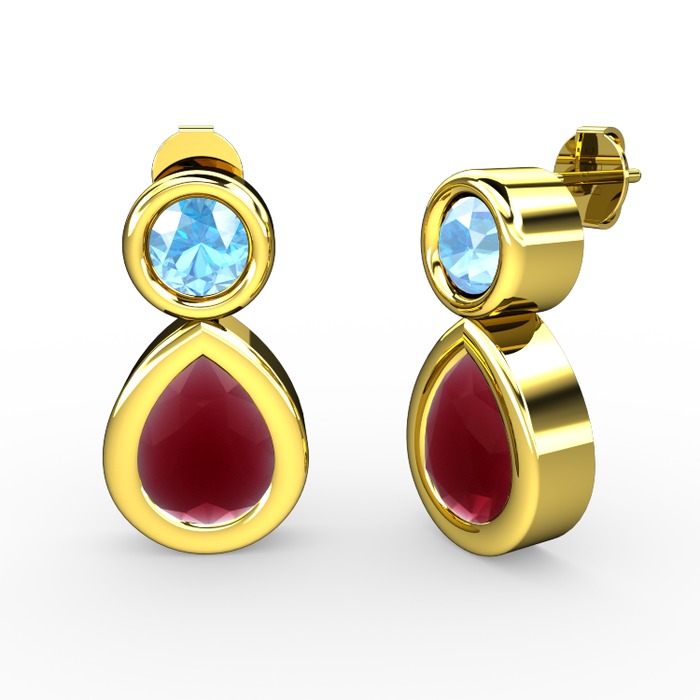 Kök yakut ve akuamarin 925 ayar altın kaplama gümüş küpe
