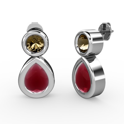 Kök yakut ve dumanlı kuvars 925 ayar gümüş küpe