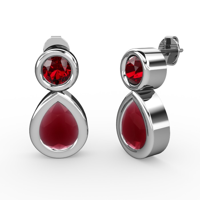 Kök yakut ve garnet 8 ayar beyaz altın küpe