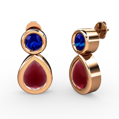 Kök yakut ve lab safir 8 ayar rose altın küpe