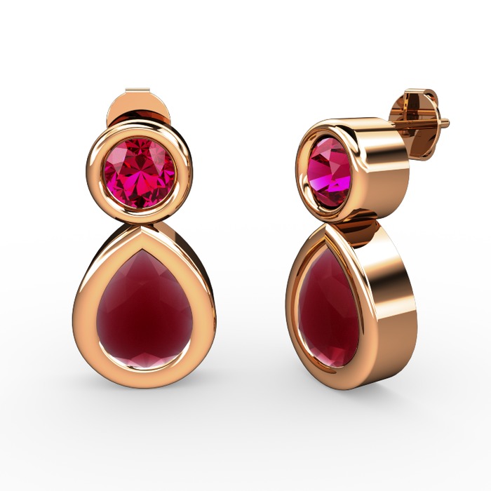 Kök yakut ve rodolit garnet 18 ayar rose altın küpe