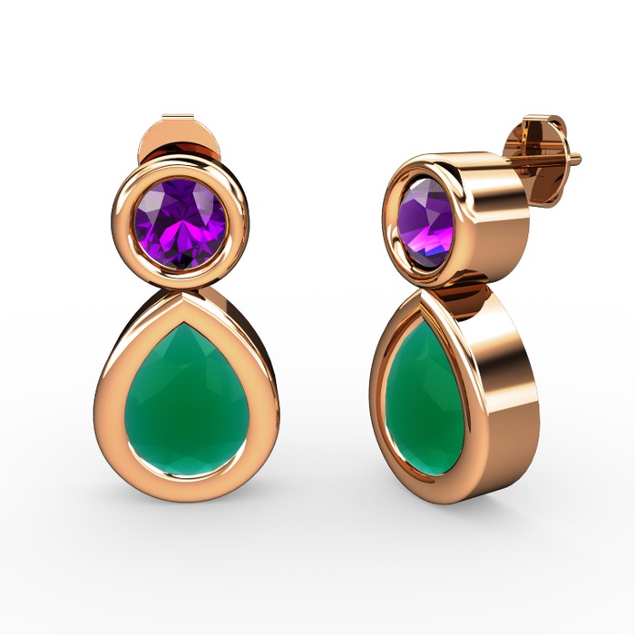 Kök zümrüt ve ametist 925 ayar rose altın kaplama gümüş küpe
