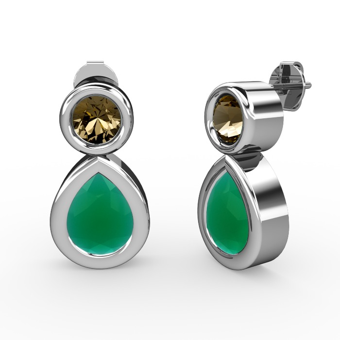 Kök zümrüt ve dumanlı kuvars 925 ayar gümüş küpe