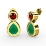 Kök zümrüt ve garnet 14 ayar altın küpe