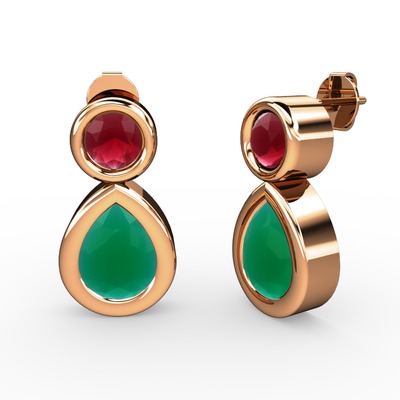 Kök zümrüt ve kök yakut 8 ayar rose altın küpe