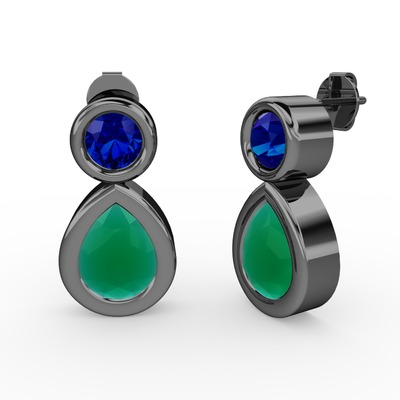 Kök zümrüt ve lab safir 925 ayar siyah rodyum kaplama gümüş küpe
