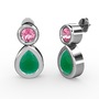 Kök zümrüt ve pembe kuvars 14 ayar beyaz altın küpe