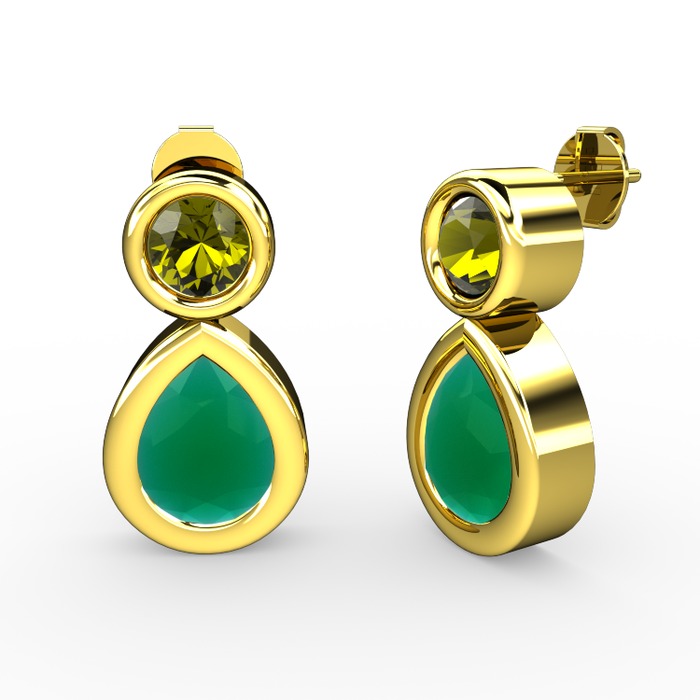 Kök zümrüt ve peridot 18 ayar altın küpe